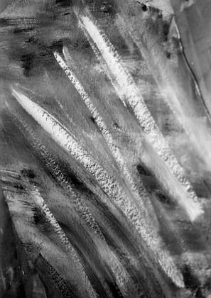 This powder is bound with resin, spread on the canvas and rhythmically structured.